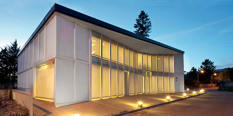Die Farbe ermöglicht eine gute Integration in die verglaste Fassade.