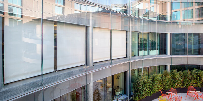 Diese Gewebekombination bietet einen optimalen Sonnenschutz und verbessert die Energieeffizienz von Gebäuden (Leed Gold): thermischer und optischer Komfort, natürliches Licht, Transparenz...